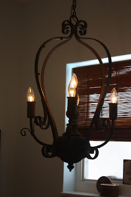 One of the things that we wanted in here was a chandelier over the tub, but we didn't want something "fancy-dancy" since we were using a fish/lake theme in here. So, on one of our many trips looking for furniture and accessories, I found this.........