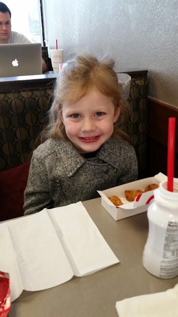 Speaking of Monday - that was actually Adalyn's birthday and Crystal wanted to do something special with just Ada. (Of course, I had to tag along since I had the car). First we went to Chick-Fil-A for breakfast - Ada played in the playground until she was tired.